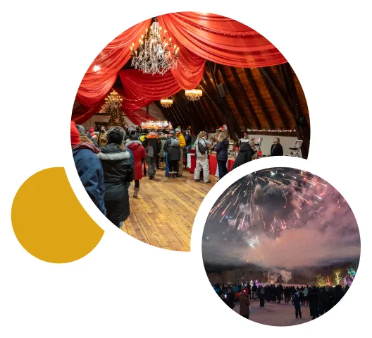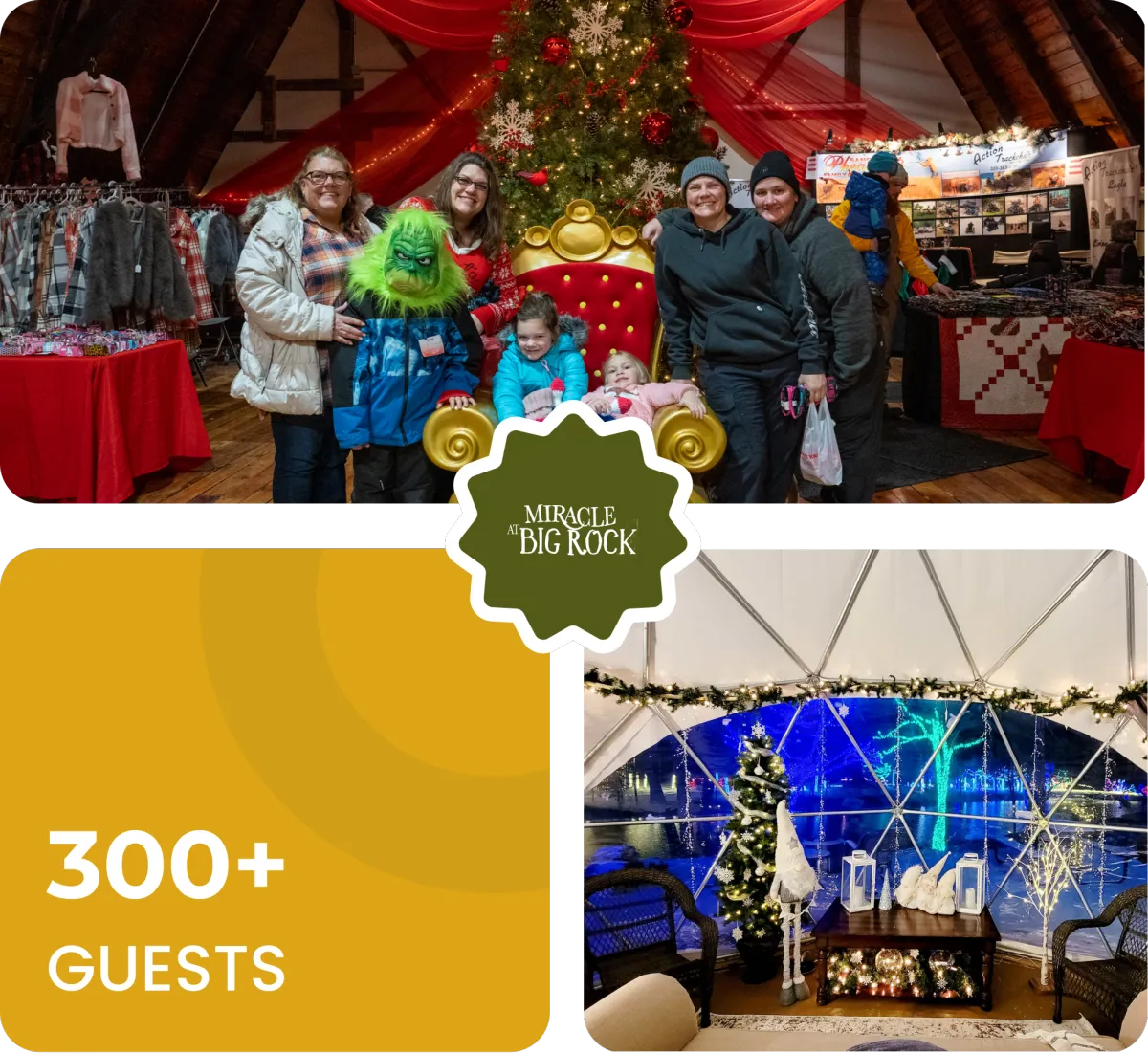 Private Rentals: Cozy spaces like VIP Village Tents, Gnome Dome, Ginger Clubhouse, or Grinch’s Lair—perfect for groups of 6–30.